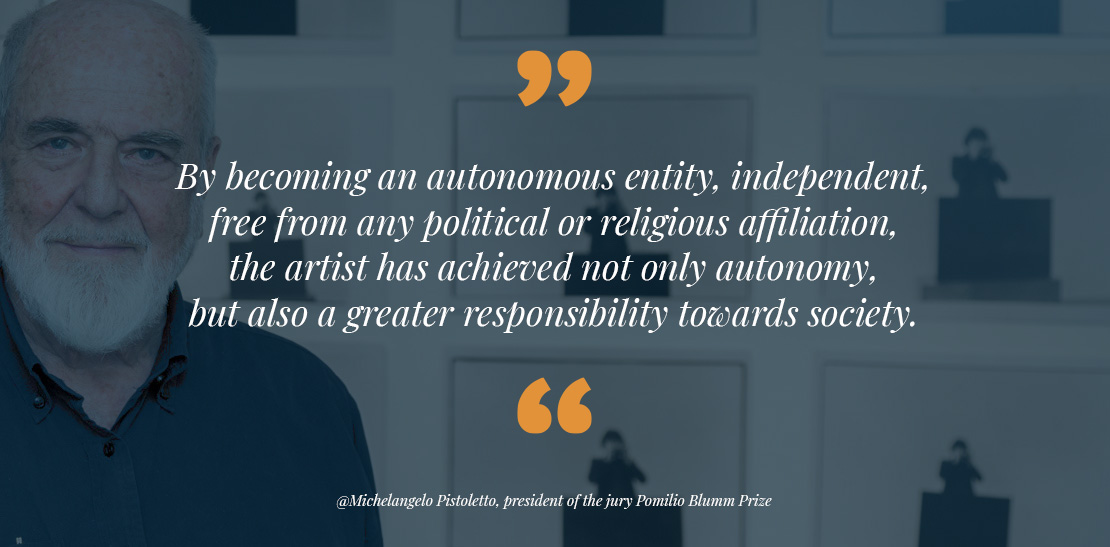 Preceded by two earlier editions, in 2015 the Pomilio Blumm Prize Art Contest Show was recreated into an innovative 'docu-contest' in collaboration with Magnolia and SkyArteHD Channel, with maestro Michelangelo Pistoletto serving as president of the jury.